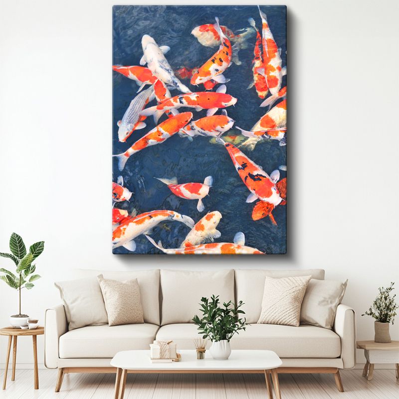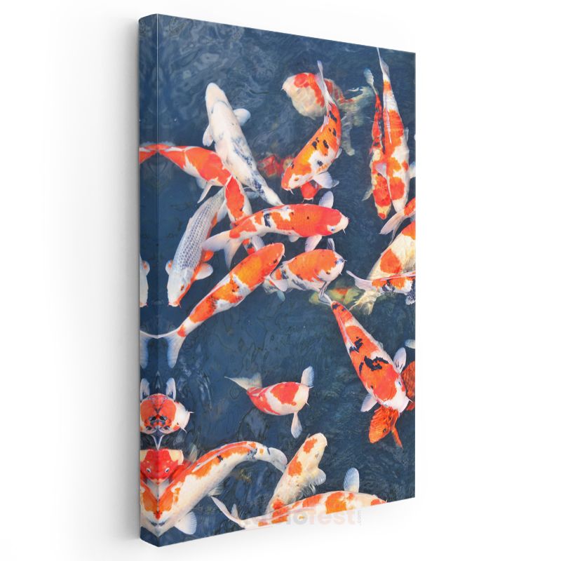 Koi Balıkları - Mavi Suda Dans Eden Turuncu-Beyaz Japon Balıkları Kanvas Tablo