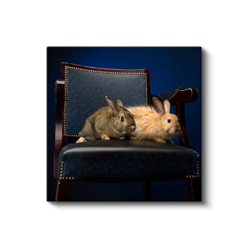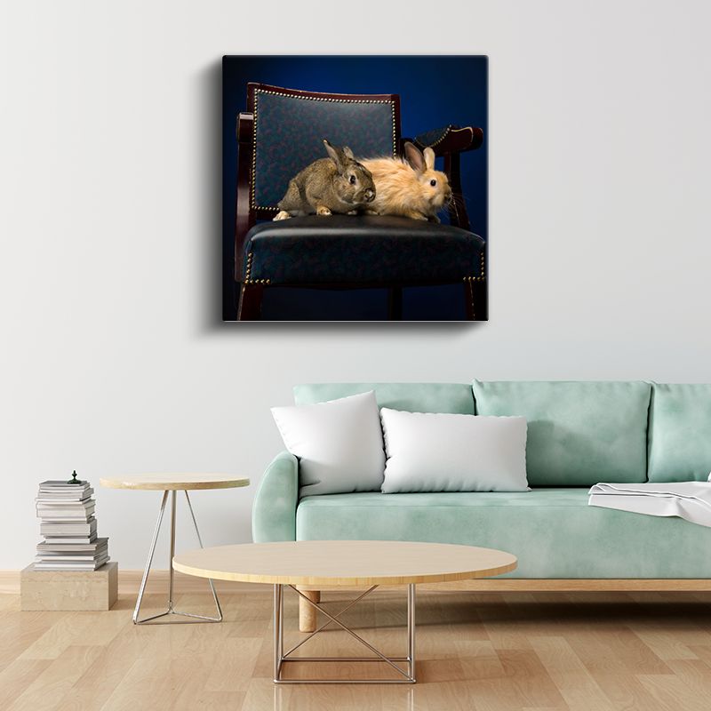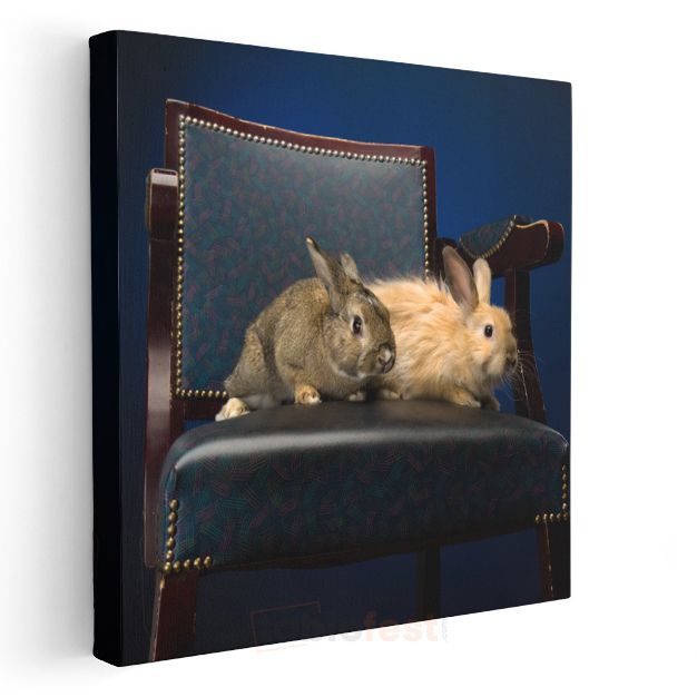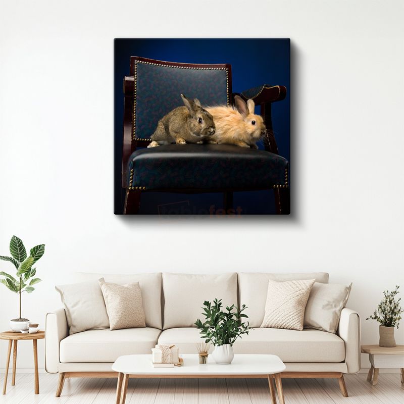 Koltukta Tavşanlar - Zarif İkili Dostluk Portresi Kanvas Tablo