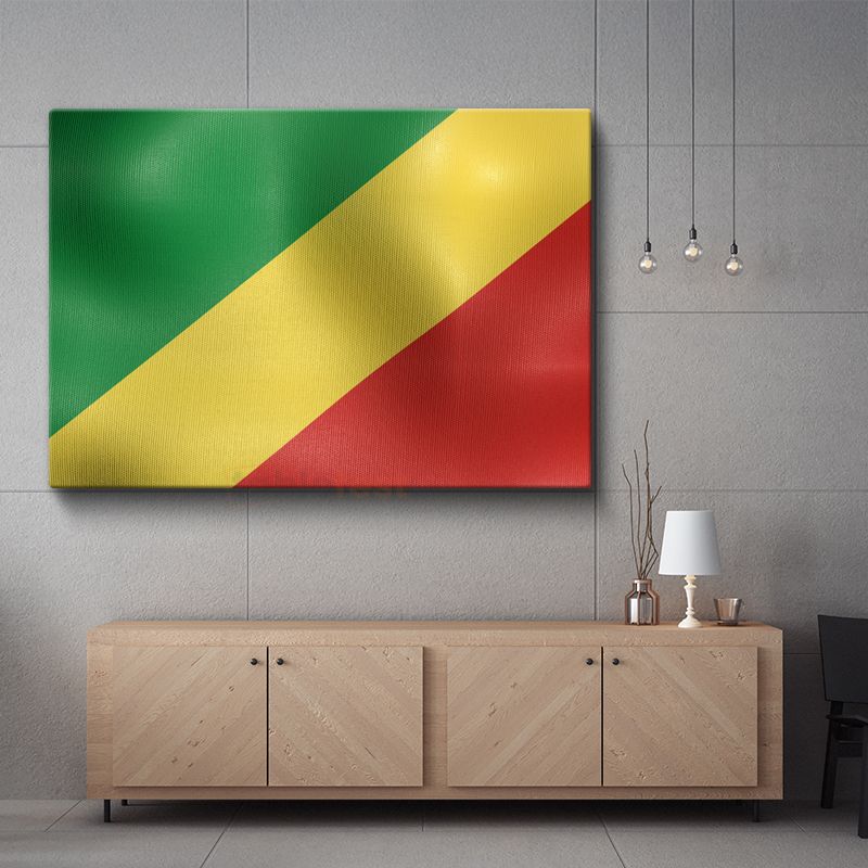 Kongo Cumhuriyeti Bayrağı - Dalgalı Görünüm Kanvas Tablo