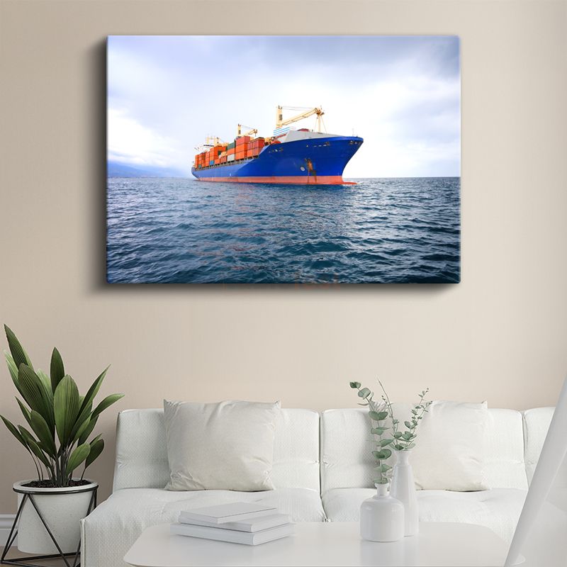 Konteyner Gemisi - Okyanus Üzerinde Yük Taşıyan Mavi Gemi Kanvas Tablo