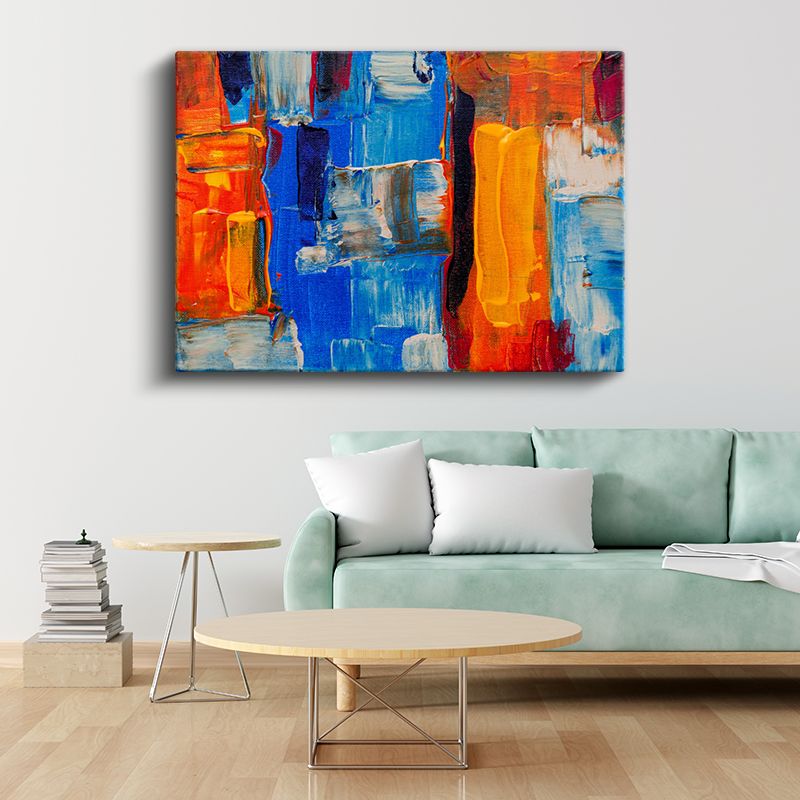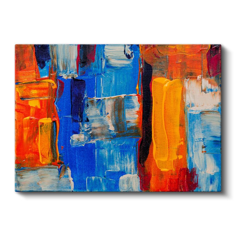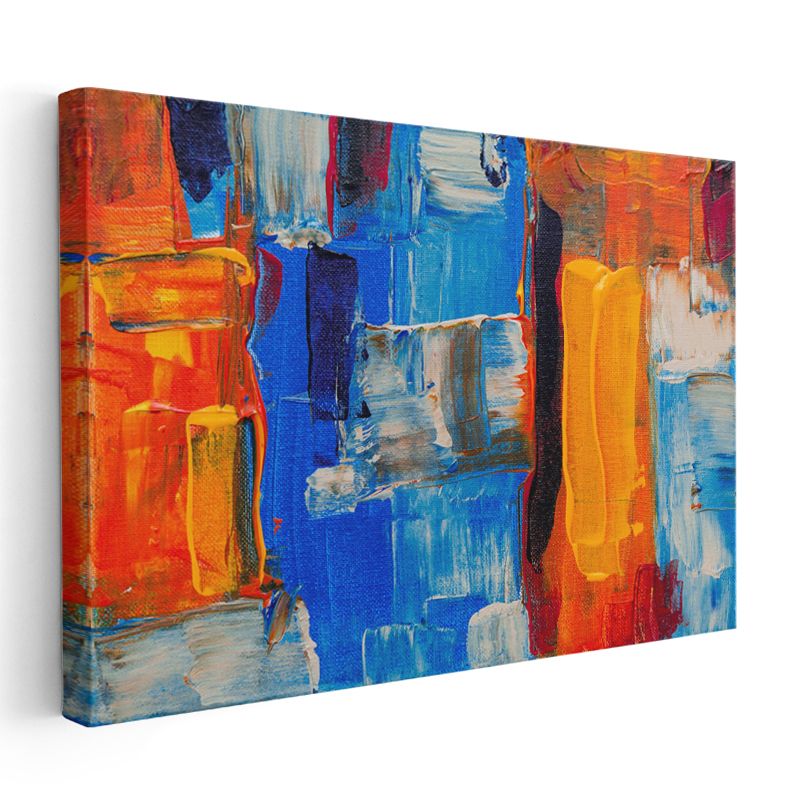 Kontrast Denge - Turuncu Mavi Soyut Fırça Darbeleri Kanvas Tablo