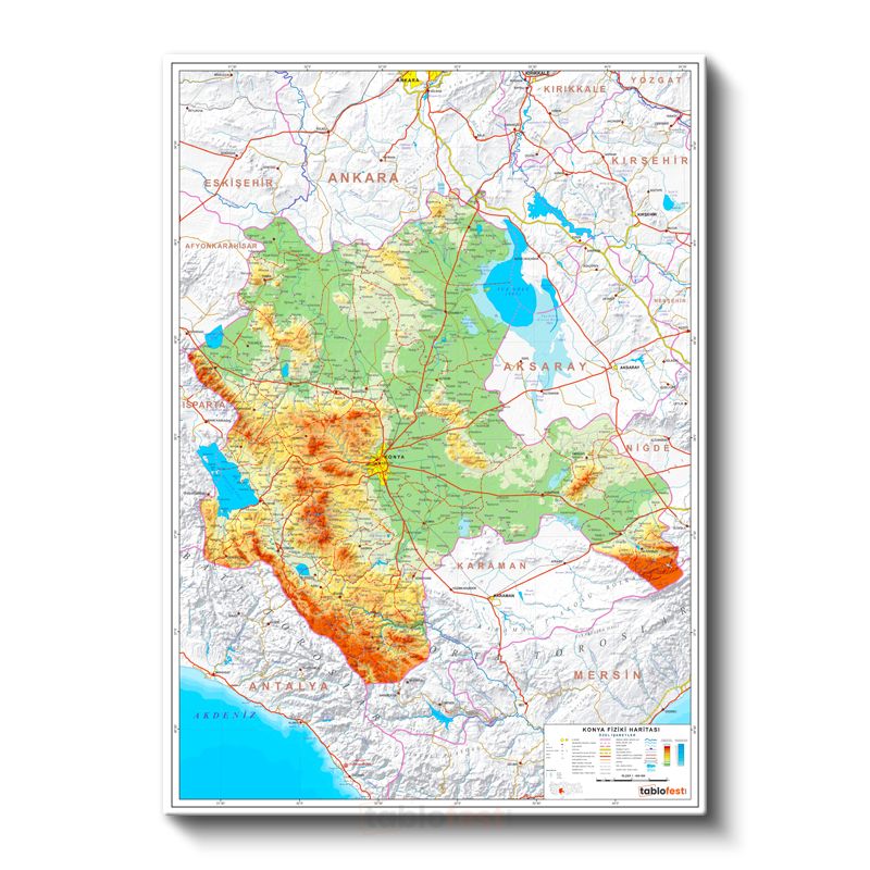 Konya - Fiziki Haritası Kanvas Tablo