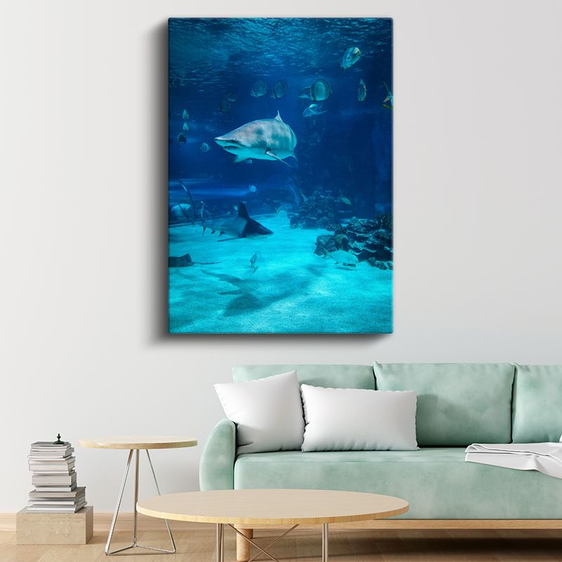 Köpekbalığı - Derin Mavi Sularda Yüzen Yırtıcı Kanvas Tablo