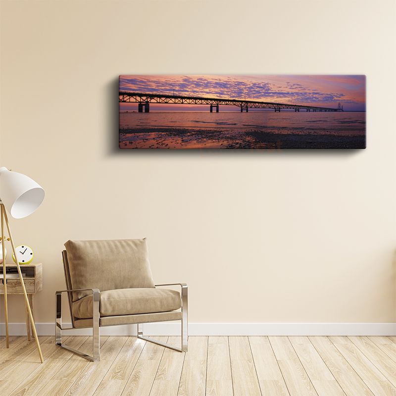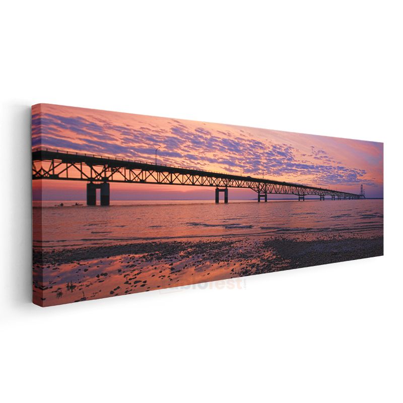 Köprü Silüeti - Pembe Gün Batımı Kanvas Tablo