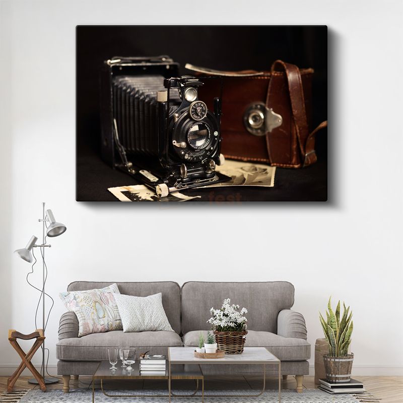 Körüklü Fotoğraf Makinesi - Deri Çantalı Klasik Model Kanvas Tablo