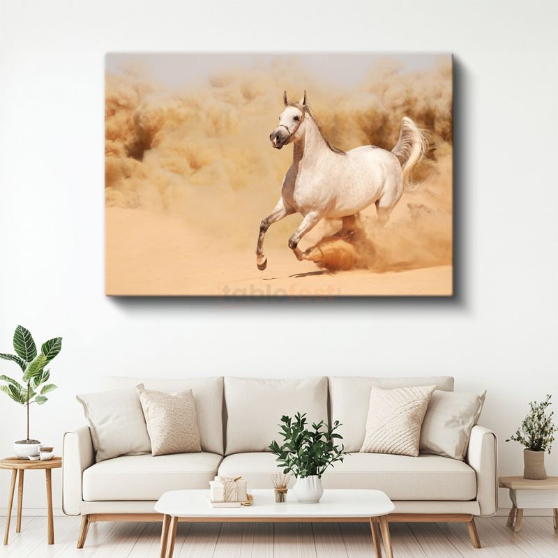 Koşan Arap Atı - Kumda Özgürlük Dansı Kanvas Tablo