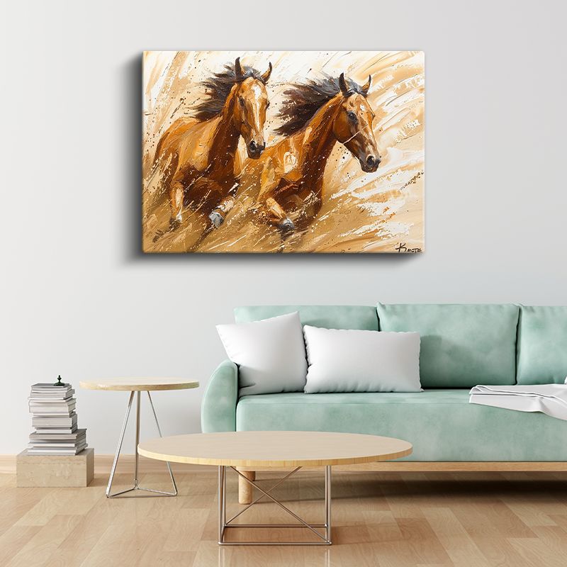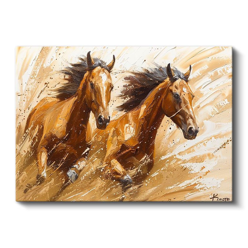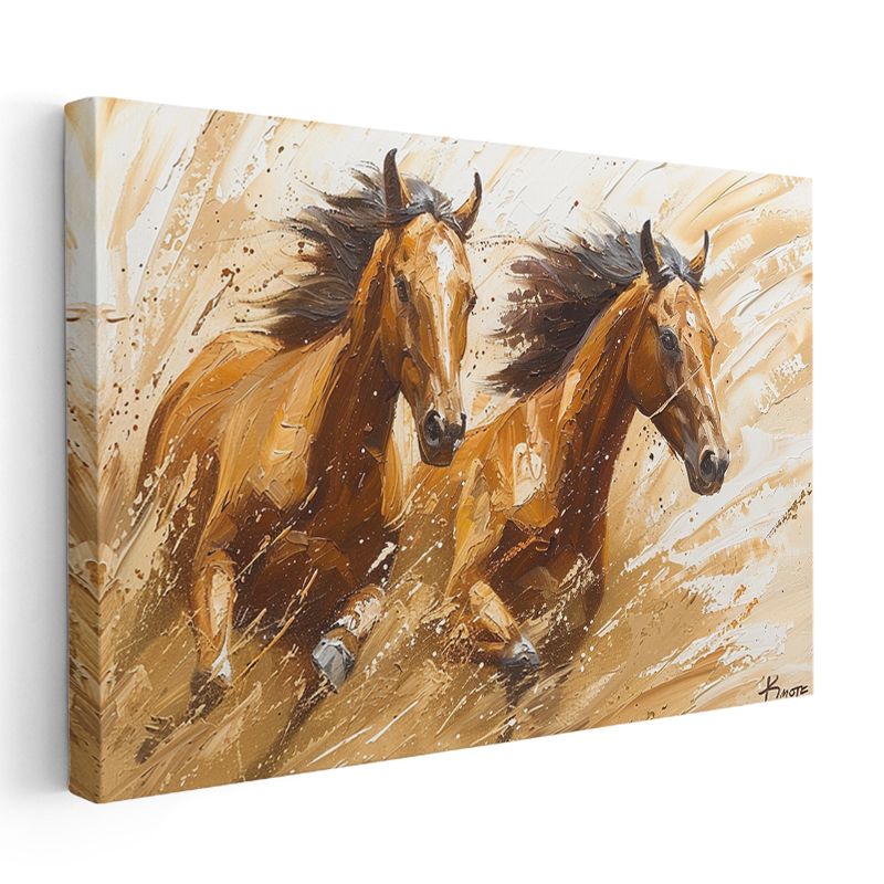 Koşan Atlar - Kahverengi İkilinin Dinamizmi Kanvas Tablo