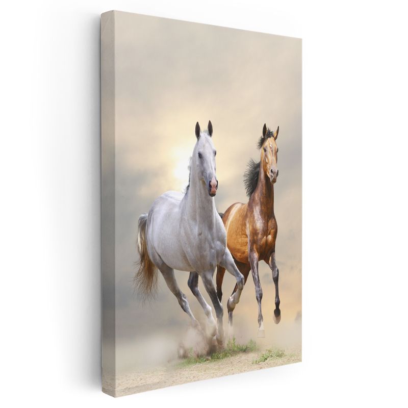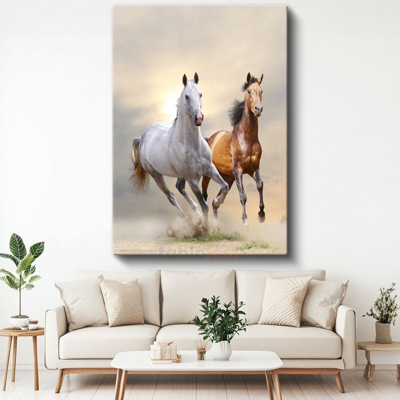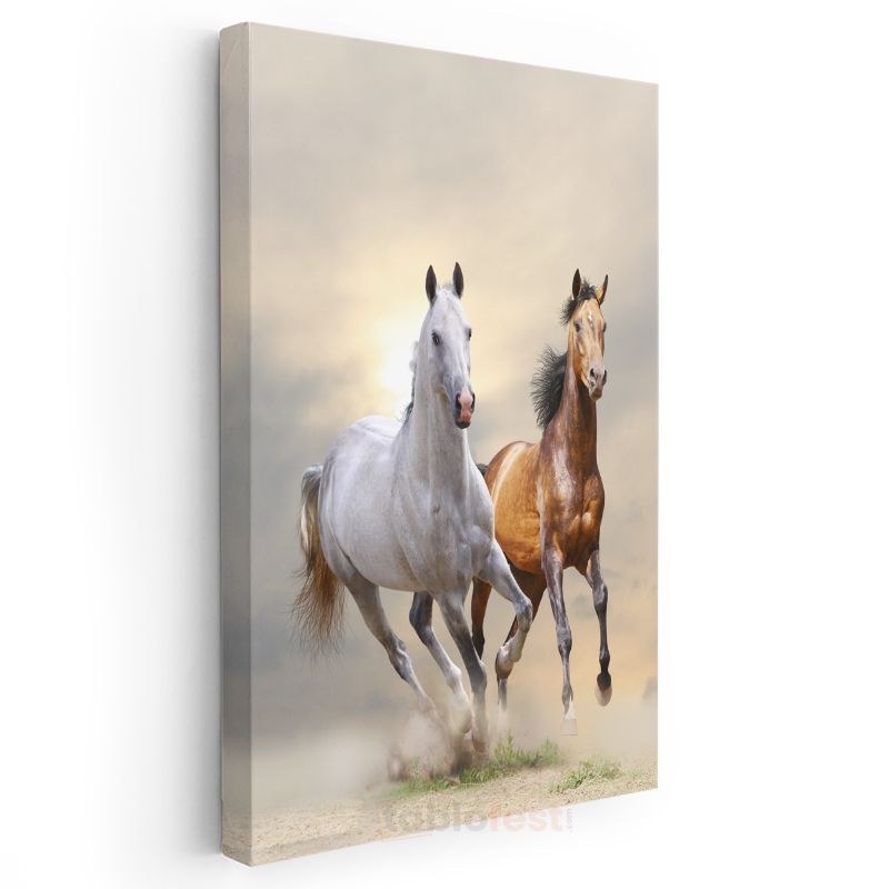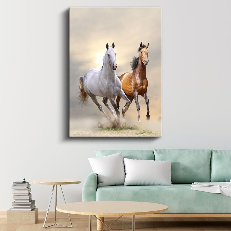 Koşan Atlar - Özgür Ruhlu İkili Kanvas Tablo
