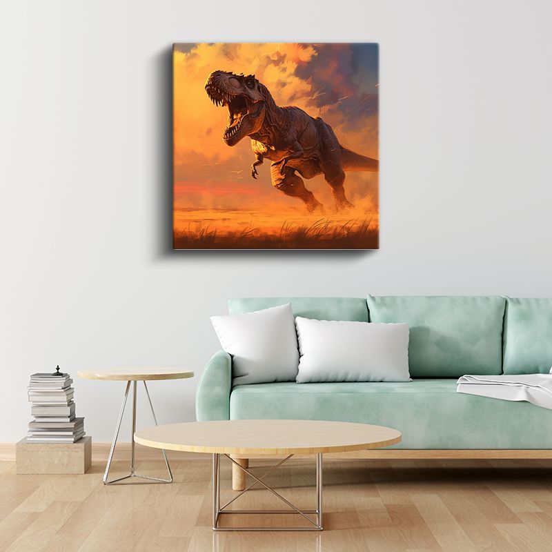 Koşan T-Rex - Gün Batımında Prehistorik Avcı Kanvas Tablo