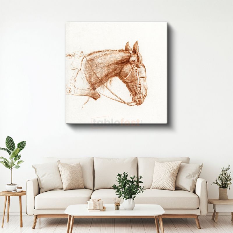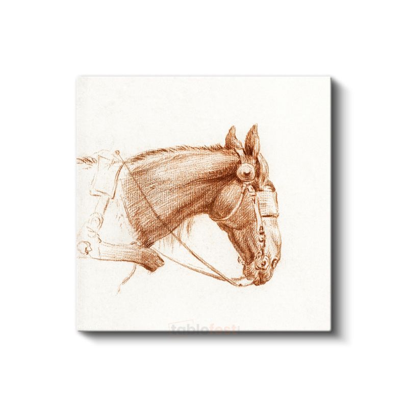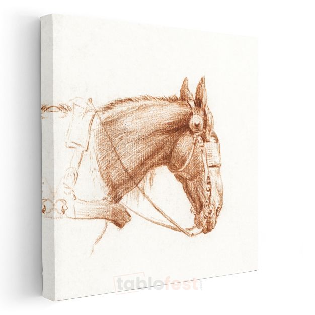 Koşum Takımlı At - Klasik Çizim Tarzında Asil Hayvan Kanvas Tablo