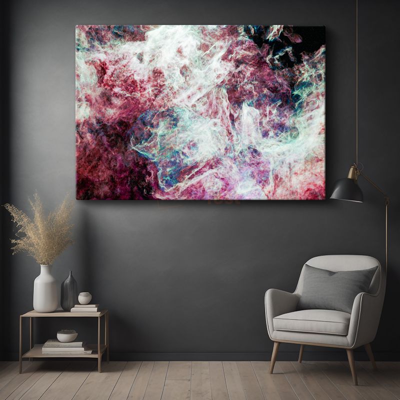 Kozmik Akış - Mor ve Beyaz Soyut Doğa Deseni Kanvas Tablo