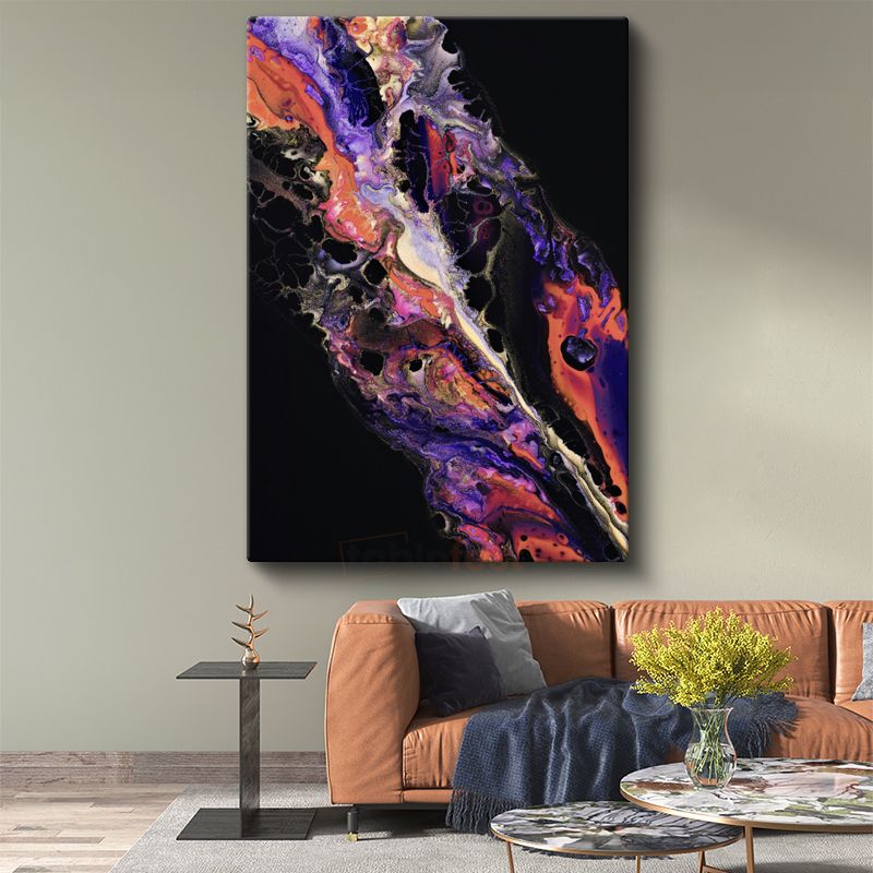 Kozmik Akış - Mor ve Turuncu Sıvı Sanatı Kanvas Tablo