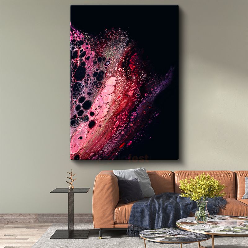 Kozmik Akış - Pembe Sıvı Kabarcıklar Kanvas Tablo