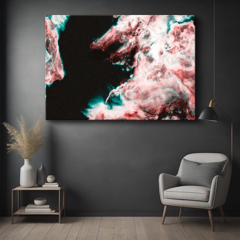 Kozmik Akış - Pembe ve Turkuaz Tonlarında Soyut Doğa Sanatı Kanvas Tablo