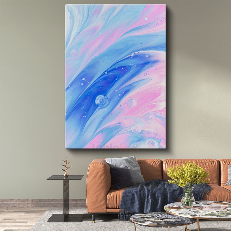 Kozmik Akışkanlık - Pembe Mavi Dalgalı Soyut Kompozisyon Kanvas Tablo