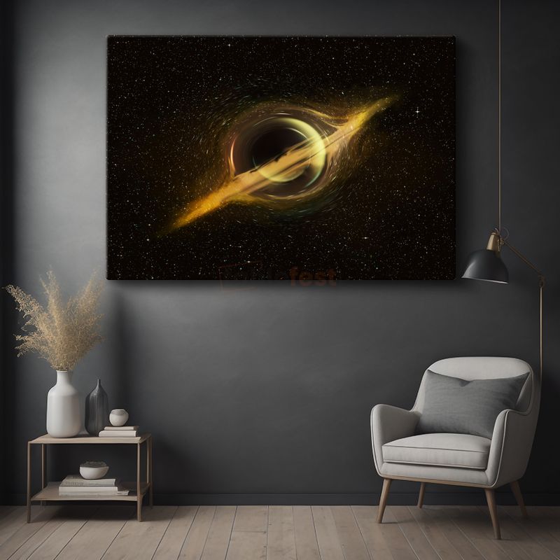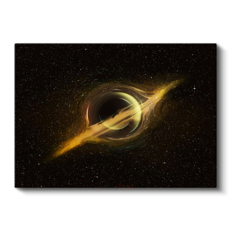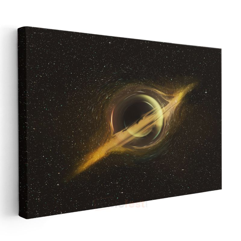 Kozmik Anomali - Yıldızlı Uzayda Altın Işıklı Kara Delik Kanvas Tablo
