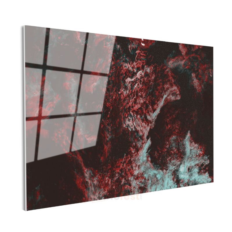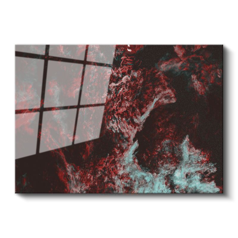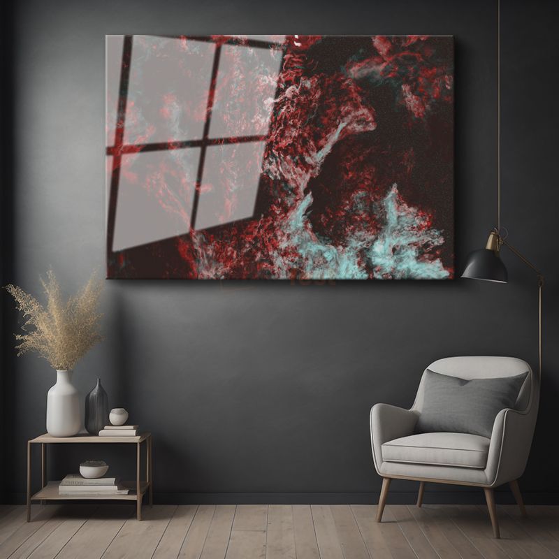 Kozmik Ateş - Uzayın Derinliklerinde Kırmızı ve Turkuaz Dansı Cam Tablo