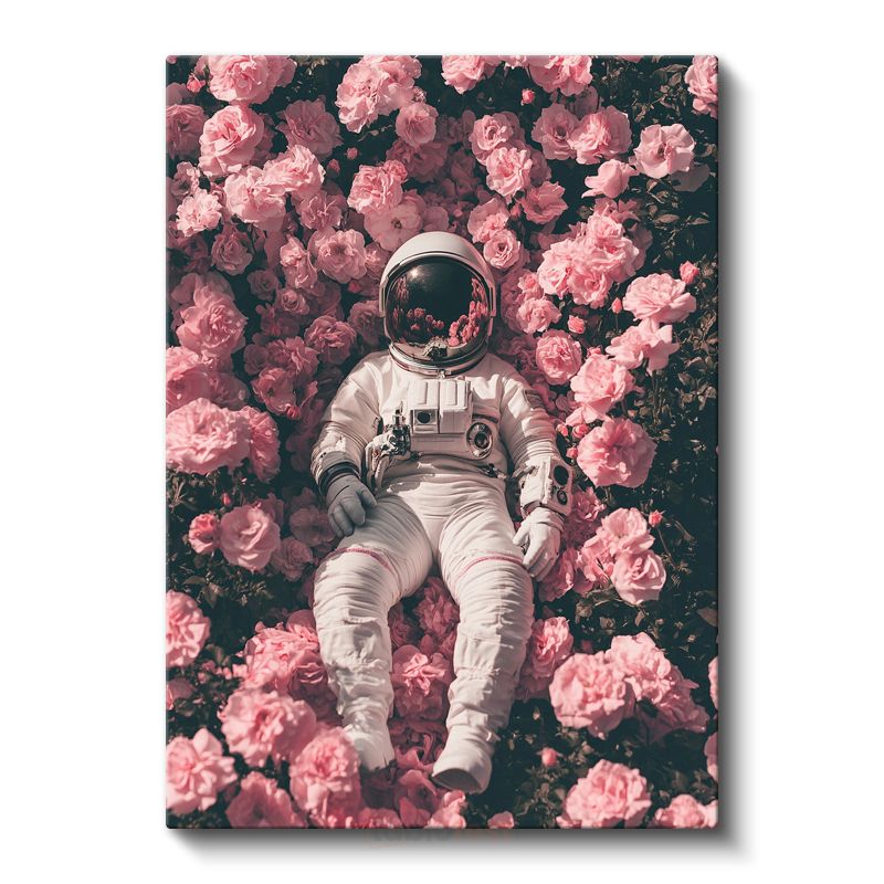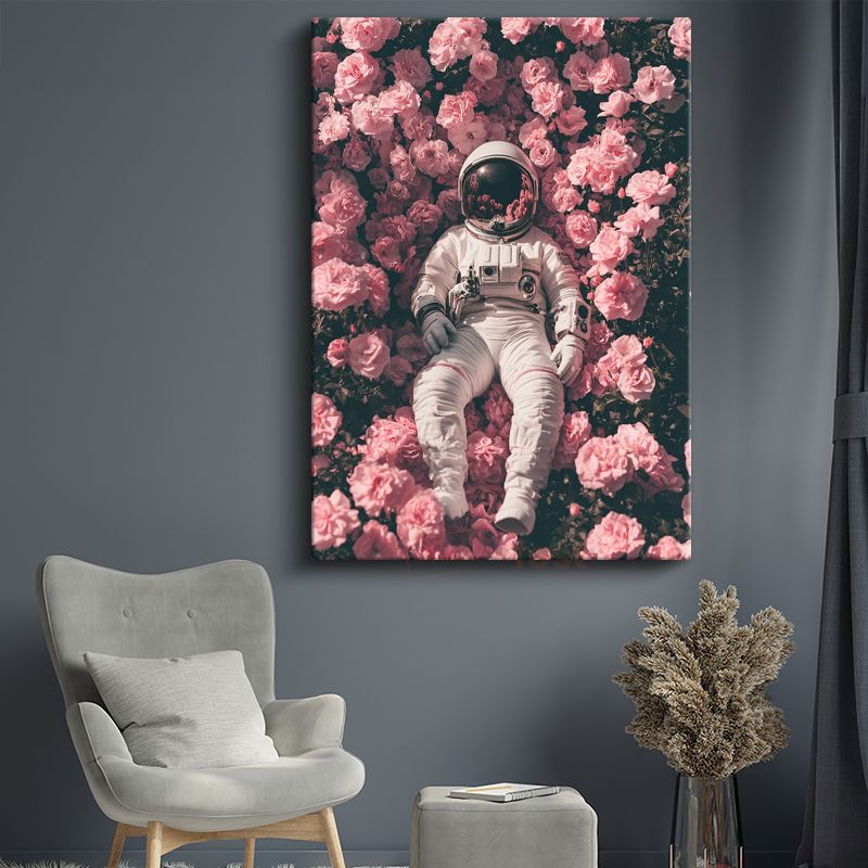 Kozmik Bahçe - Güller Arasında Dinlenen Astronot Kanvas Tablo