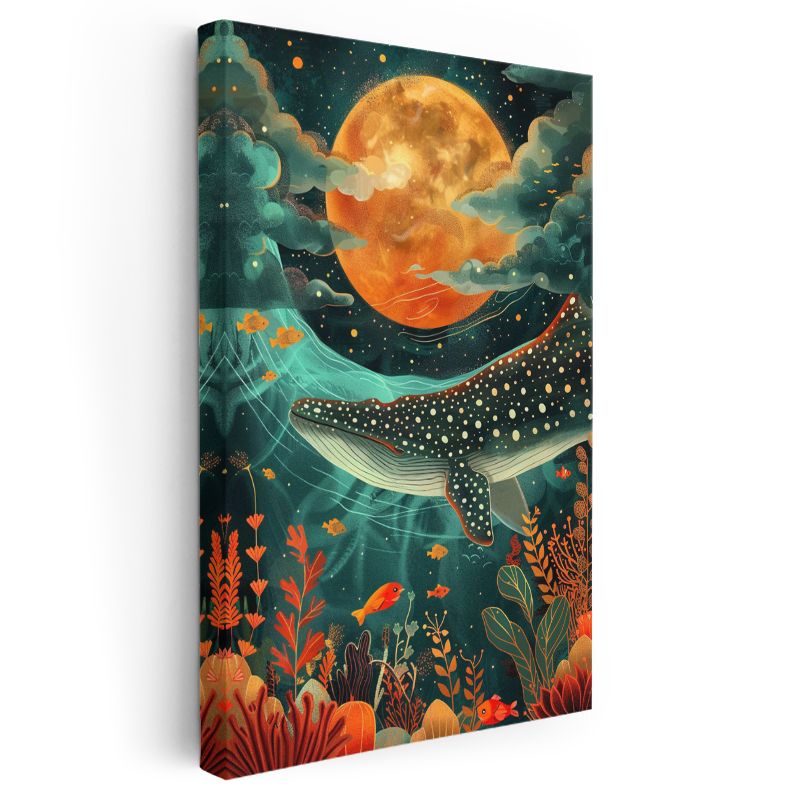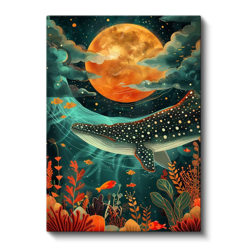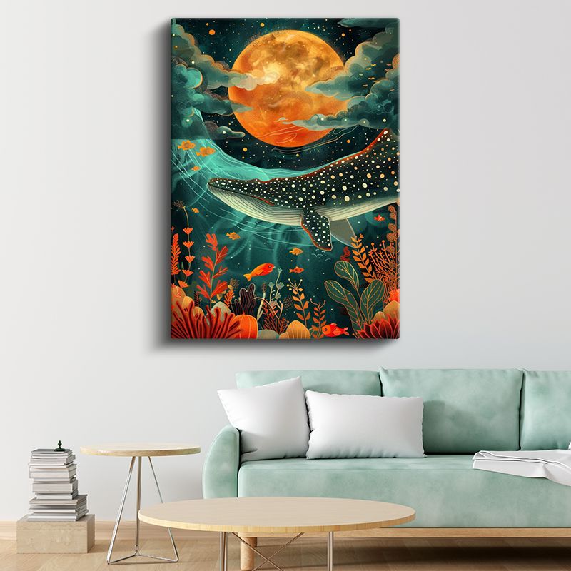 Kozmik Balina - Ay Işığında Dans Eden Deniz Devi Kanvas Tablo