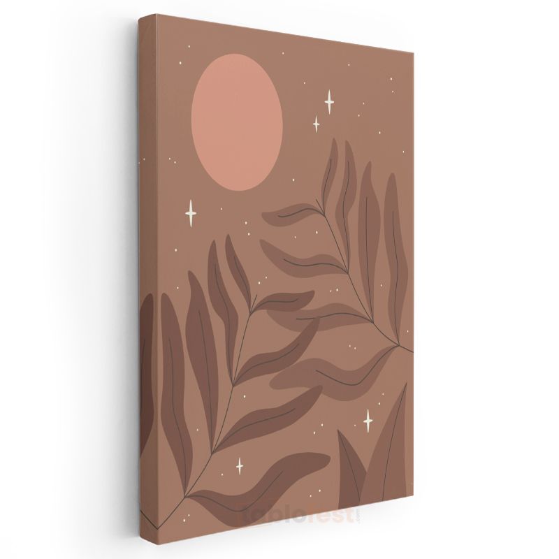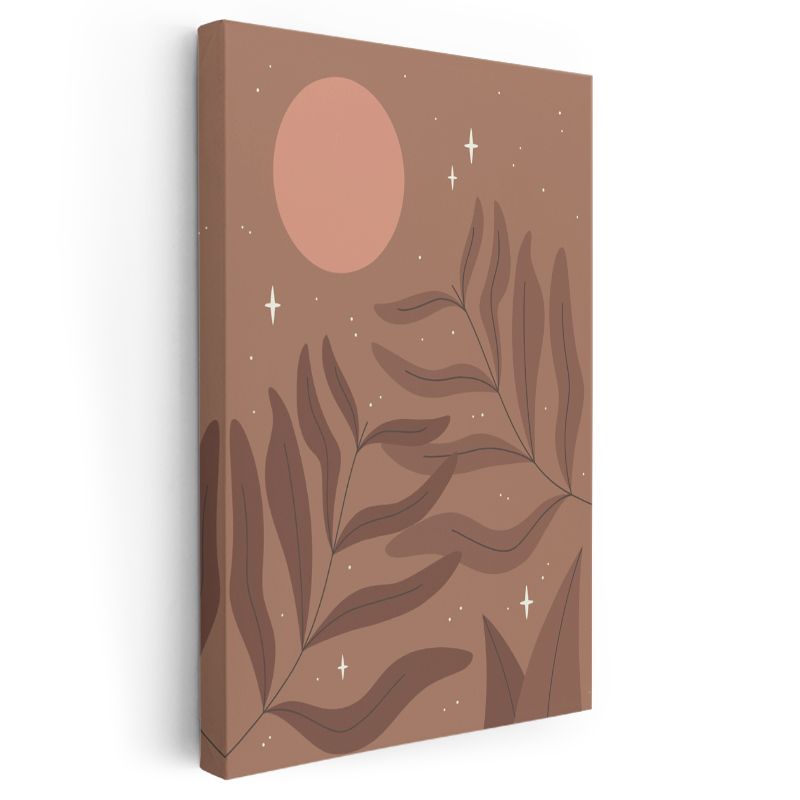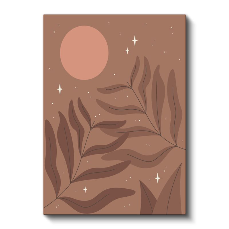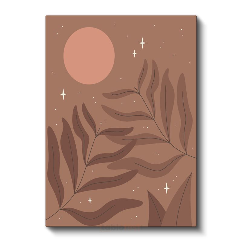 Kozmik Botanik - Minimalist Yaprak ve Ay Harmonisi Kanvas Tablo