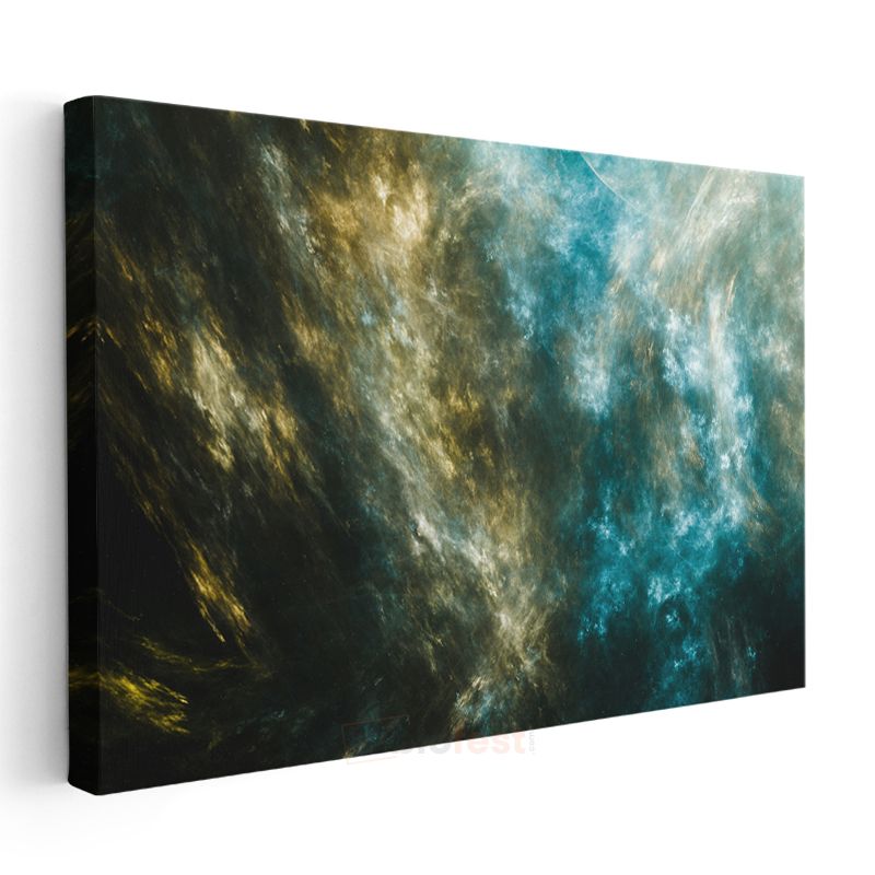 Kozmik Bulut - Altın ve Turkuaz Nebula Detayları Kanvas Tablo