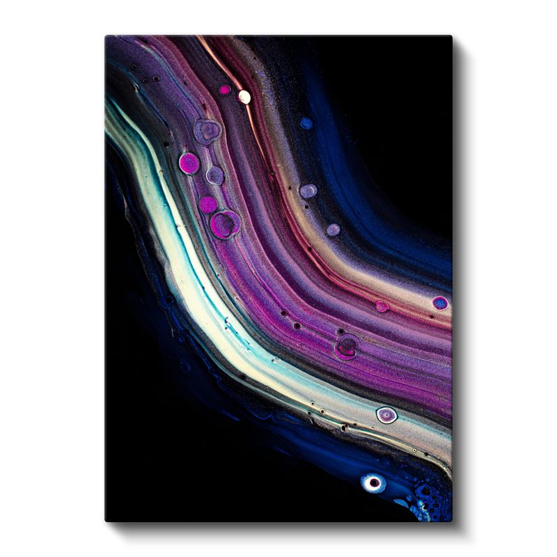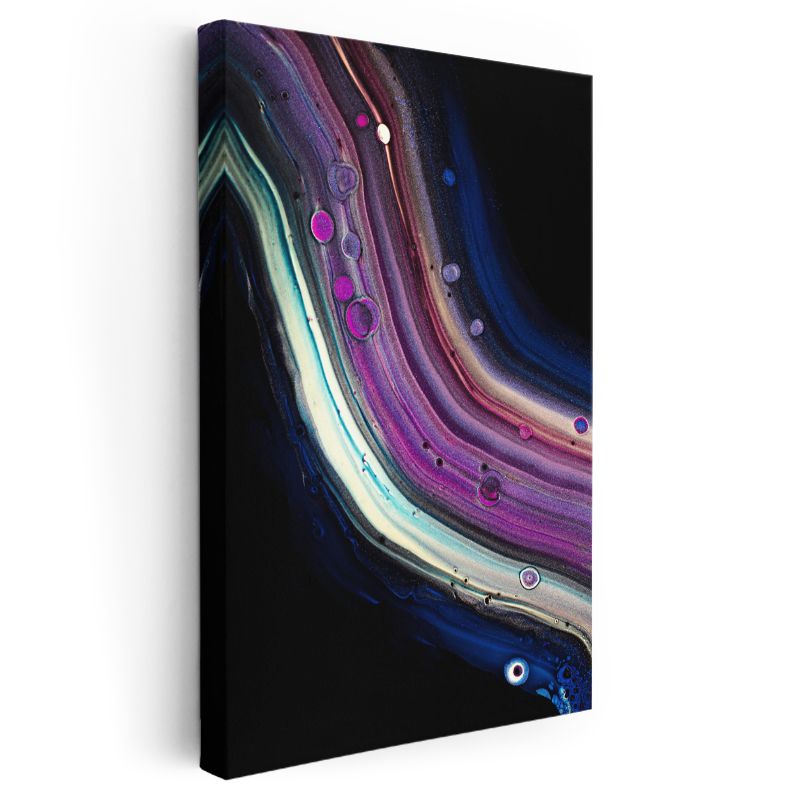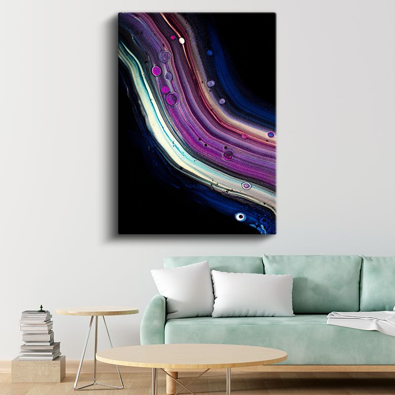 Kozmik Dalga - Mor ve Mavi Tonlarında Akışkan Formlar Kanvas Tablo