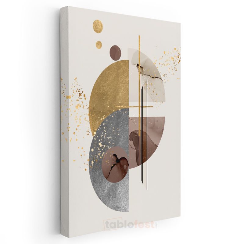 Kozmik Denge - Altın Vurgulu Geometrik Daireler Kompozisyonu Kanvas Tablo