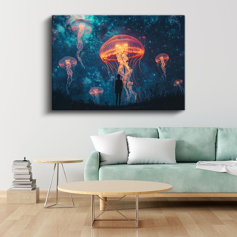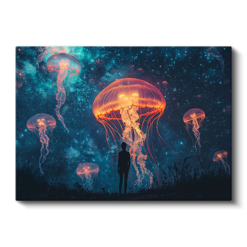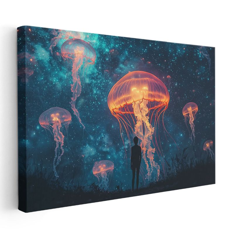 Kozmik Denizaltı - Işıklı Denizanalarının Dansı Kanvas Tablo