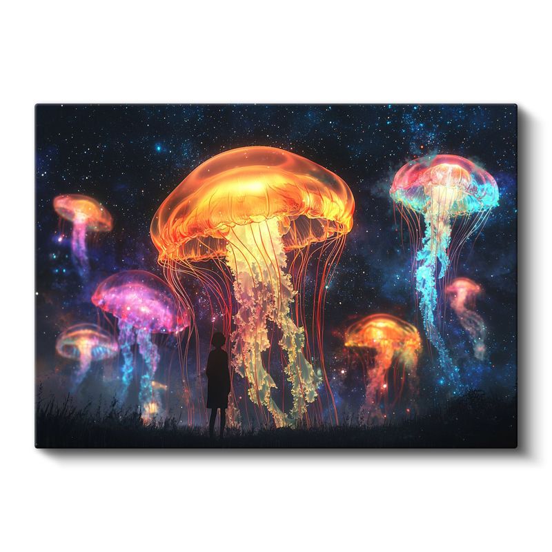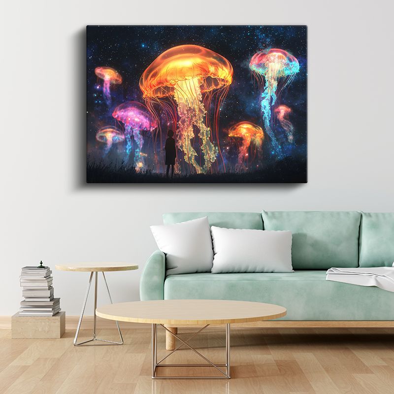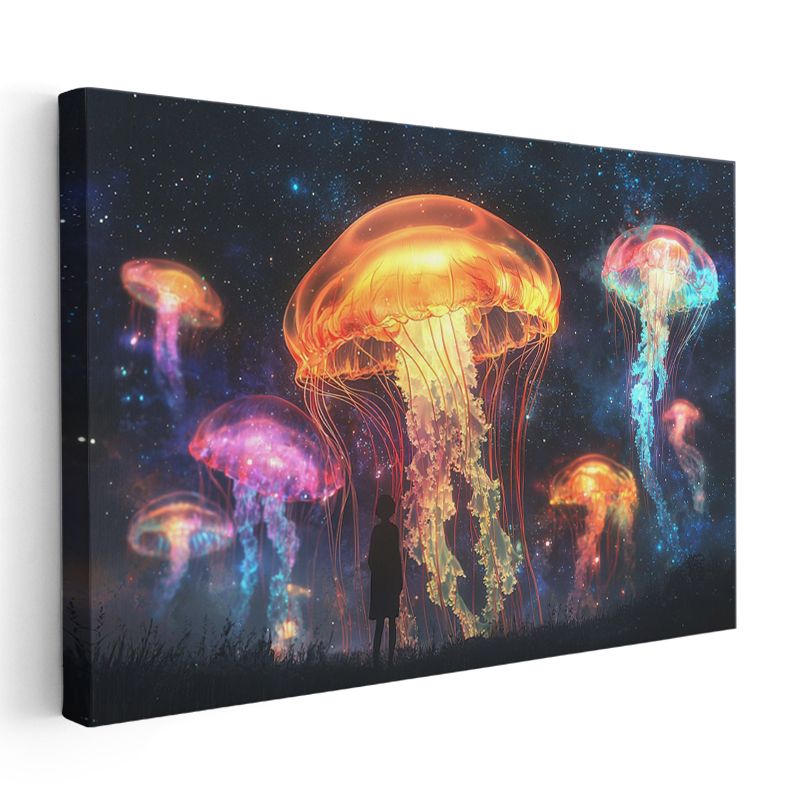 Kozmik Denizanaları - Yıldızlar Arasında Parlayan Işıklı Yaratıklar Kanvas Tablo