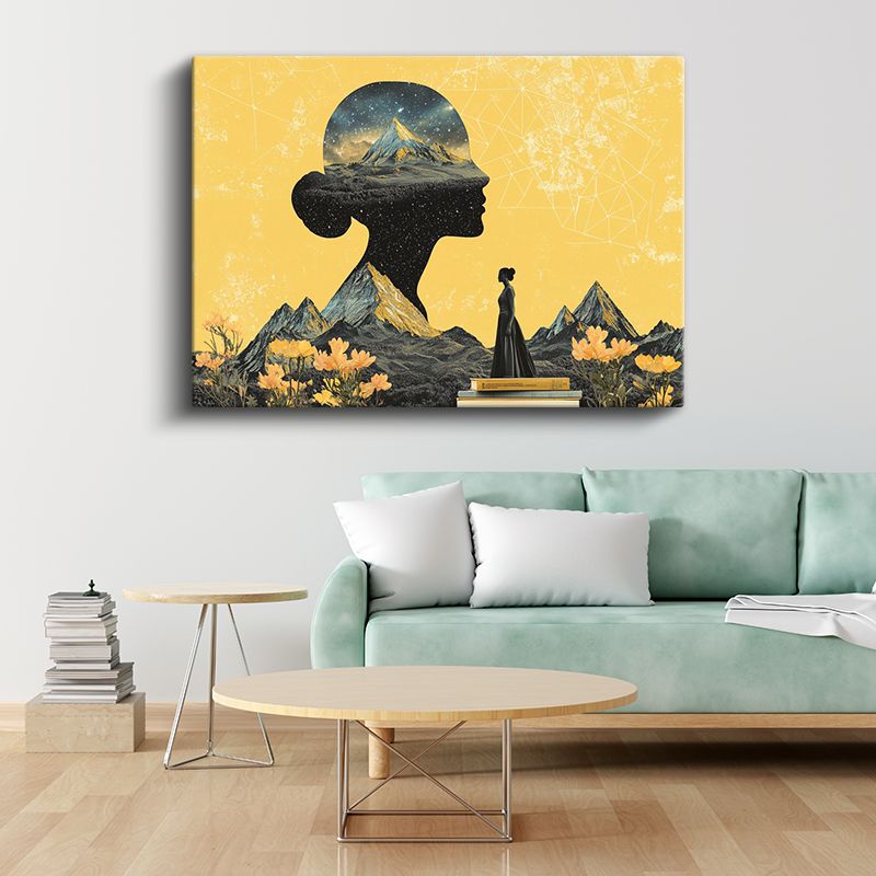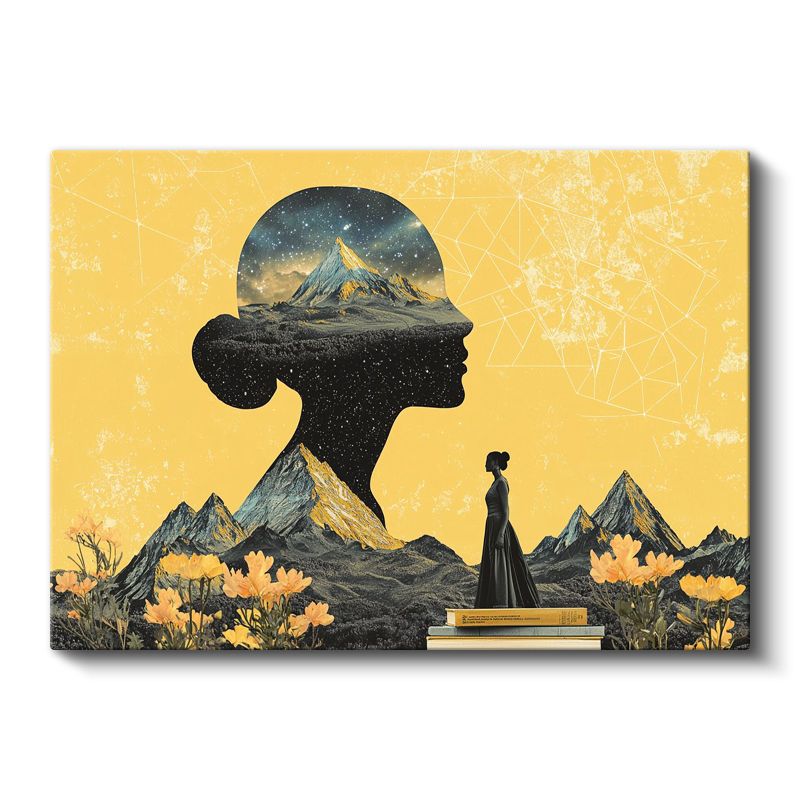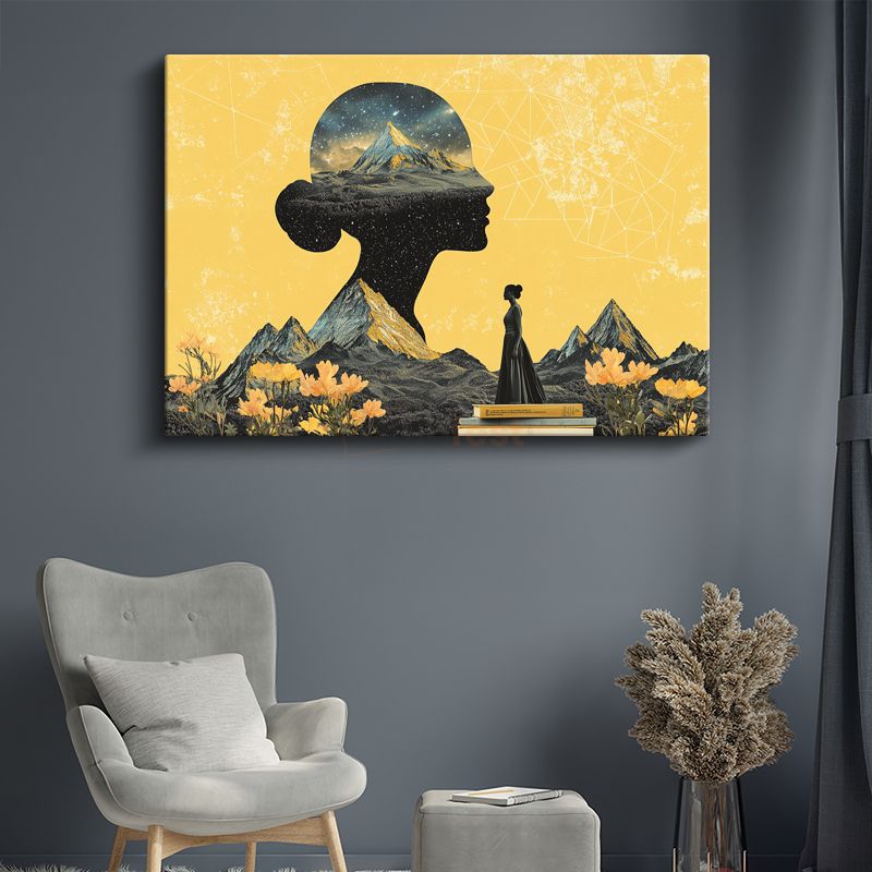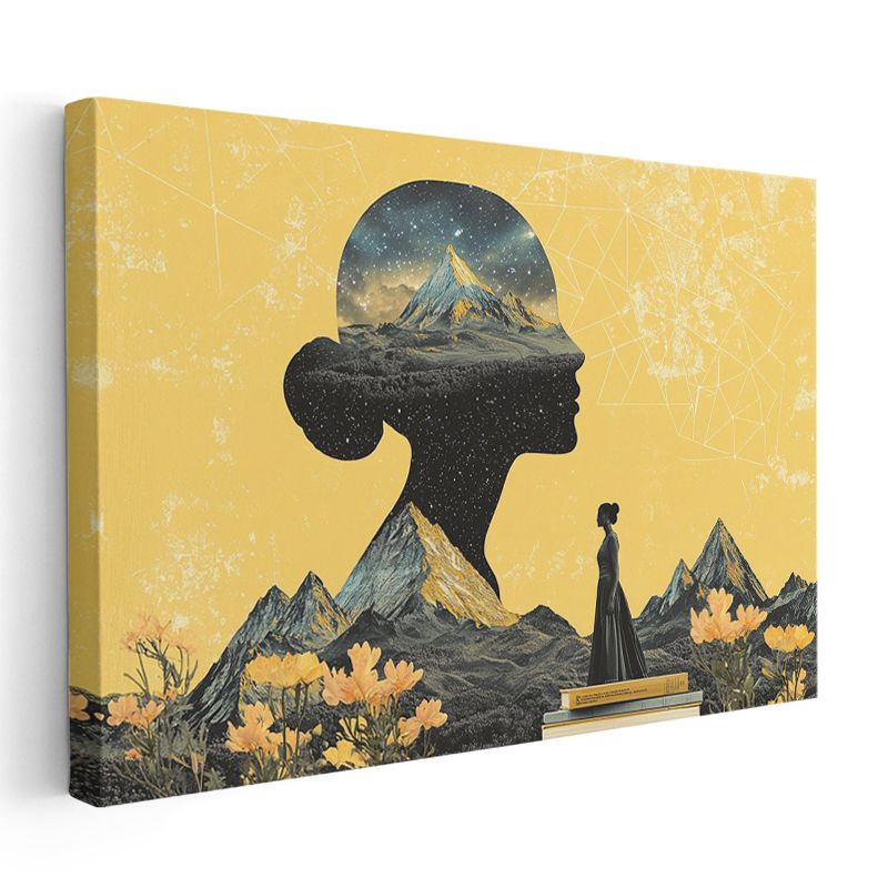Kozmik Düşünce - Zihninde Dağlar Taşıyan Silüet Kanvas Tablo