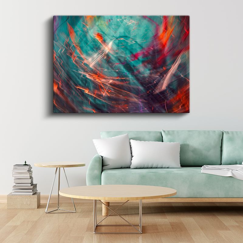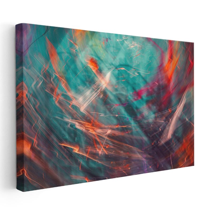 Kozmik Enerji - Turkuaz ve Kırmızı Tonlarında Dinamik Soyut Kanvas Tablo