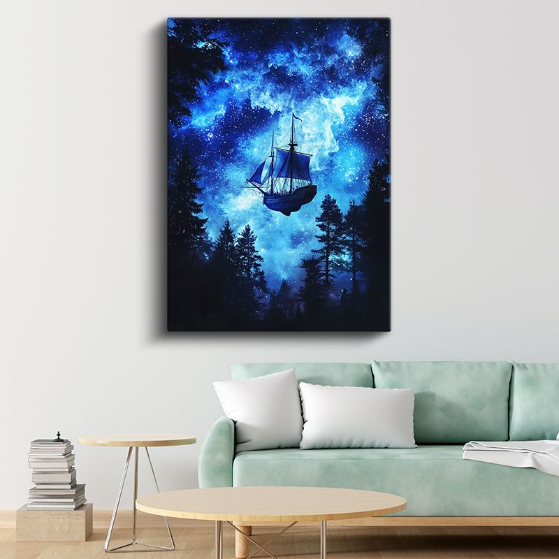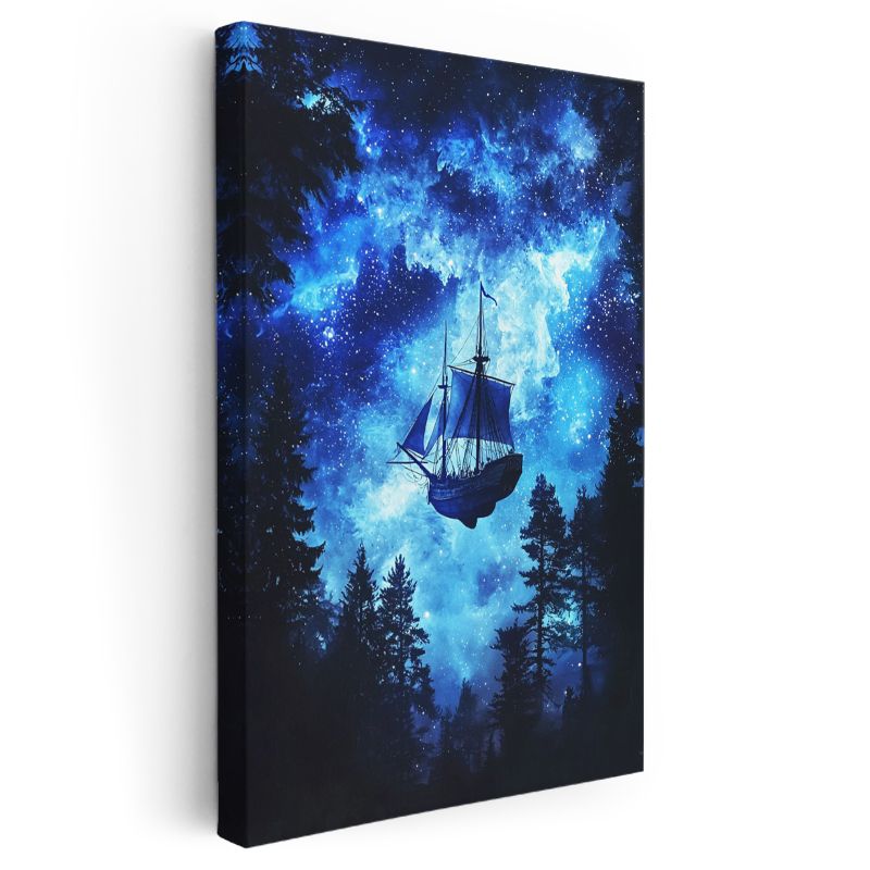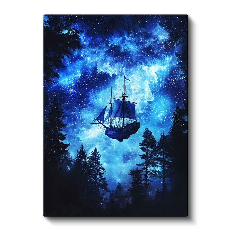 Kozmik Gemi - Yıldızlar Arasında Süzülen Yelkenli Kanvas Tablo