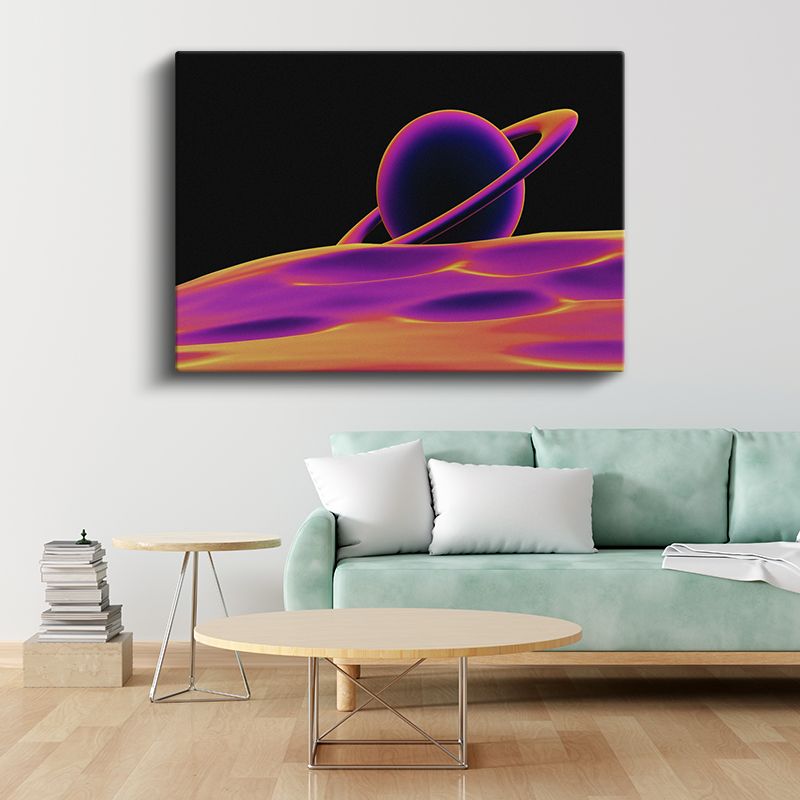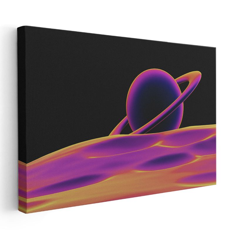 Kozmik Gezegen - Mor ve Turuncu Tonlarında Soyut Galaksi Kanvas Tablo