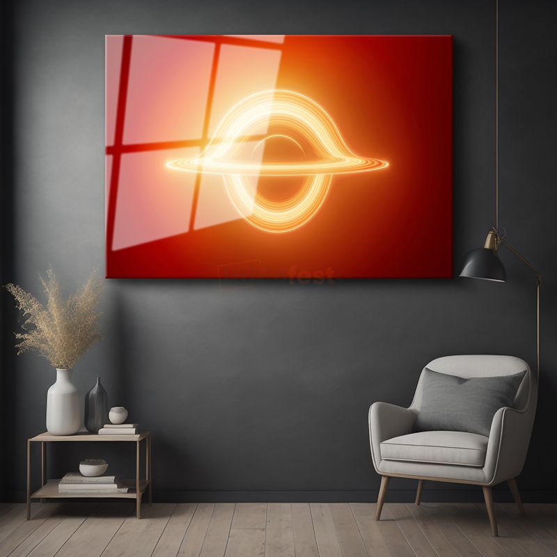 Kozmik Işık Halkası - Turuncu Parıltılı Uzay Fenomeni Cam Tablo