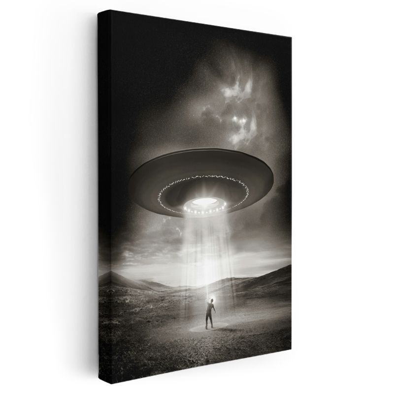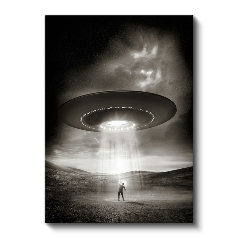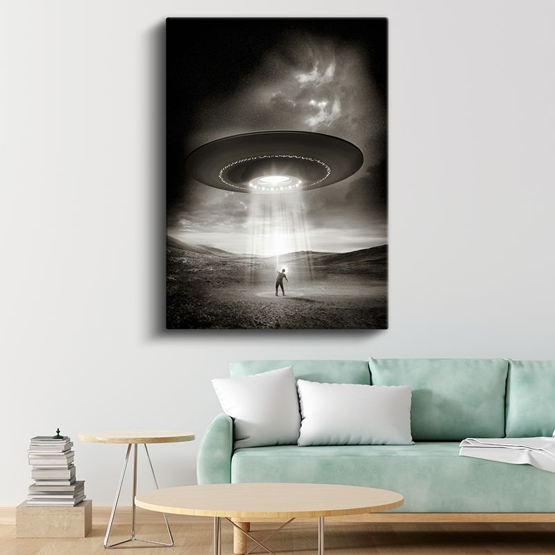 Kozmik Karşılaşma - Işık Huzmesindeki İnsan Silüeti Kanvas Tablo