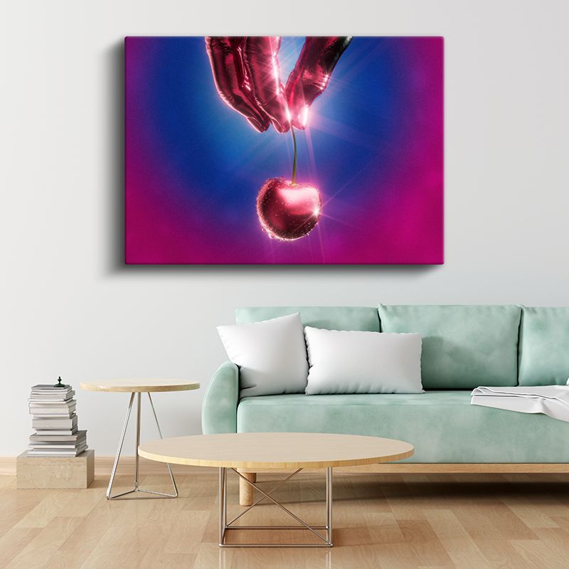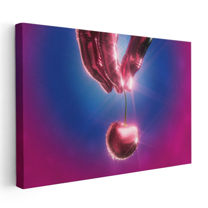 Kozmik Kiraz - Metalik Dokunuş Neon Işıltılı Kanvas Tablo