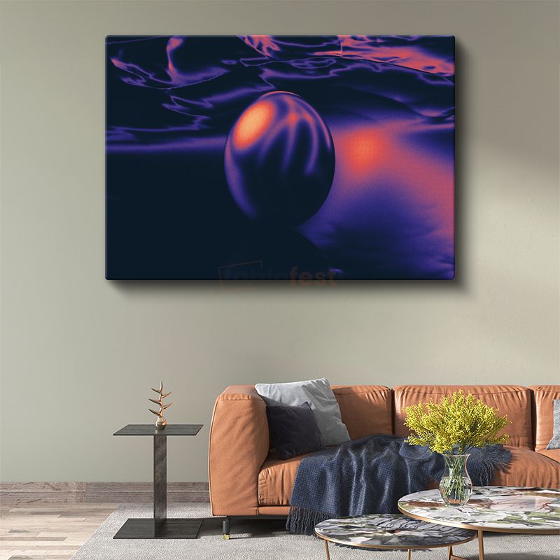 Kozmik Küre - Mor ve Turuncu Tonlarda Soyut Gezegen Kanvas Tablo