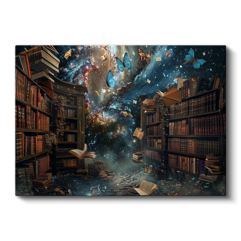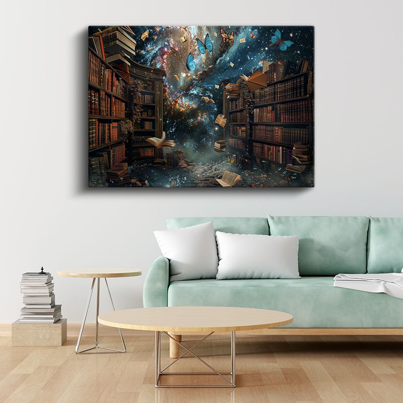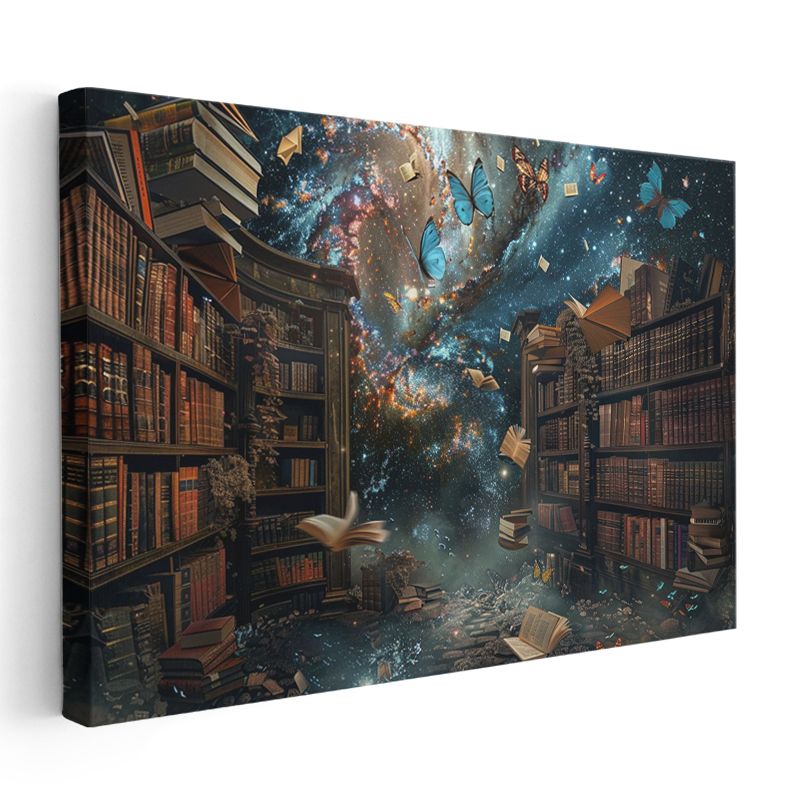 Kozmik Kütüphane - Kitaplar Arasında Uçuşan Kelebeklerle Evrenin Sırları Kanvas Tablo