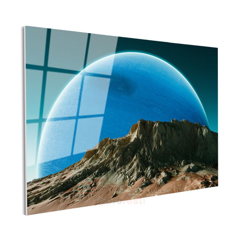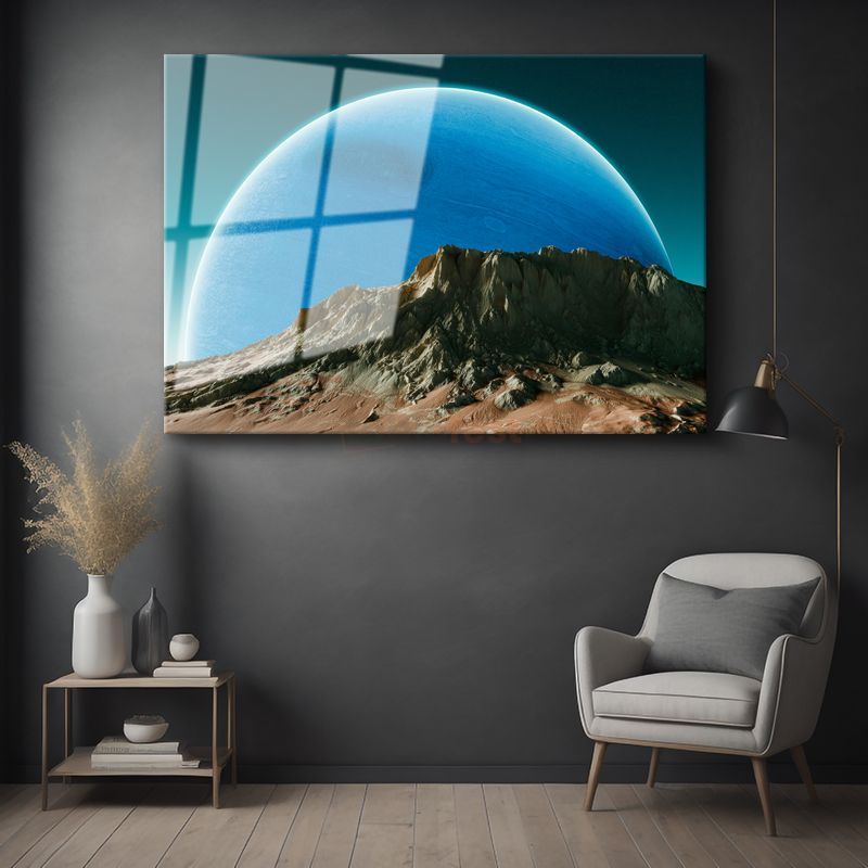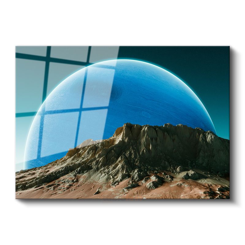 Kozmik Manzara - Dağlar ve Mavi Gezegen Cam Tablo