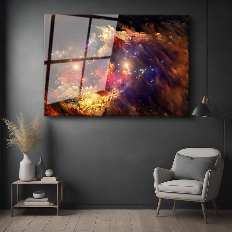 Kozmik Manzara - Renkli Nebula ve Yıldızlar Cam Tablo