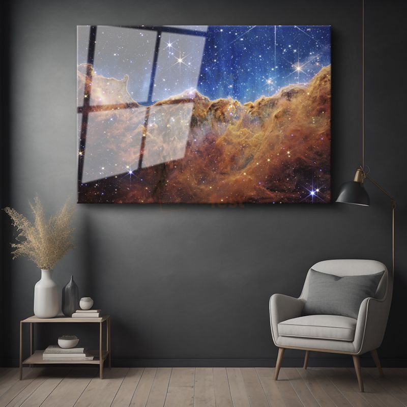 Kozmik Nebula - Yıldızlarla Bezeli Uzay Manzarası Cam Tablo