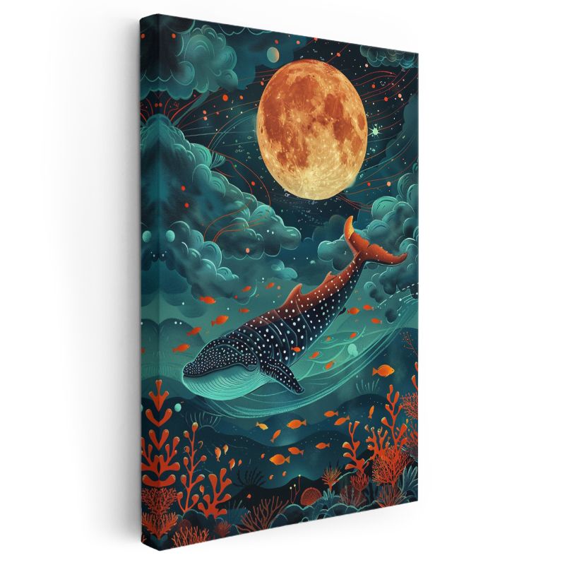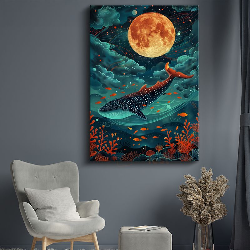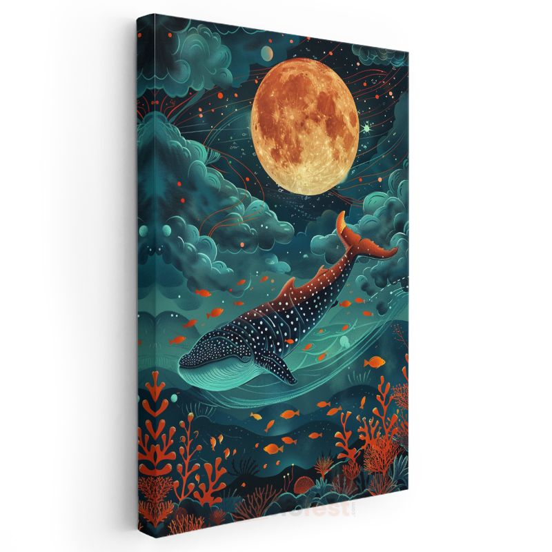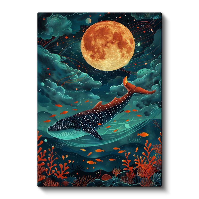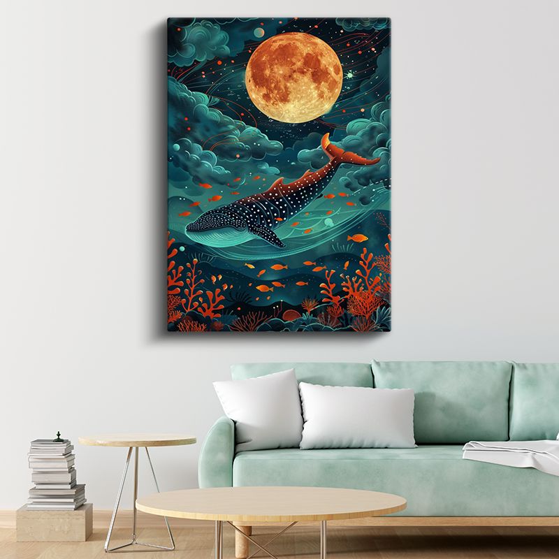 Kozmik Okyanus - Ay Işığında Süzülen Balina Kanvas Tablo