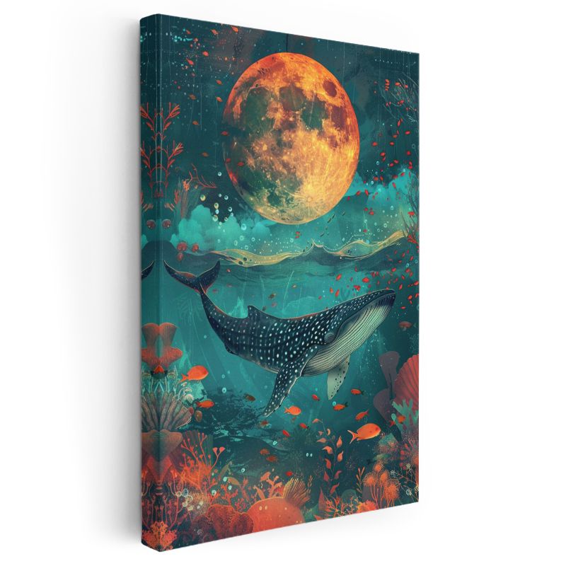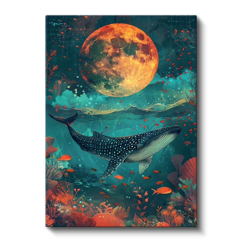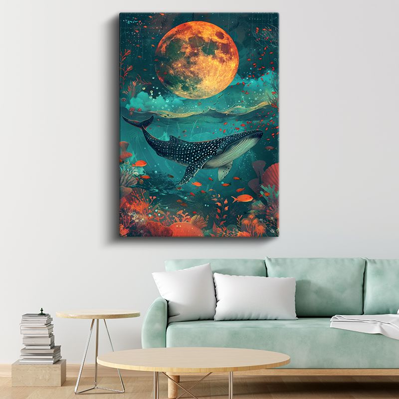 Kozmik Okyanus - Ay Işığında Yüzen Balina Kanvas Tablo