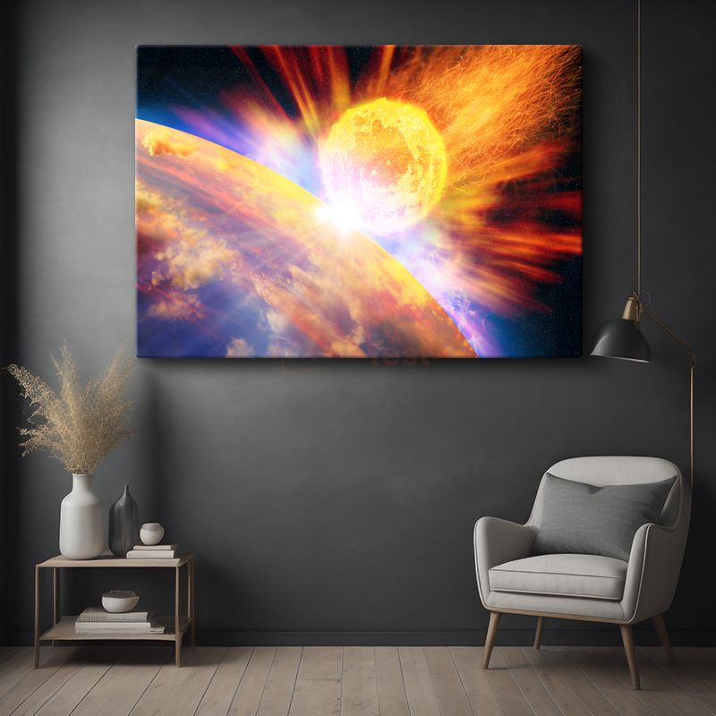 Kozmik Patlama - Güneş ve Gezegen Kanvas Tablo