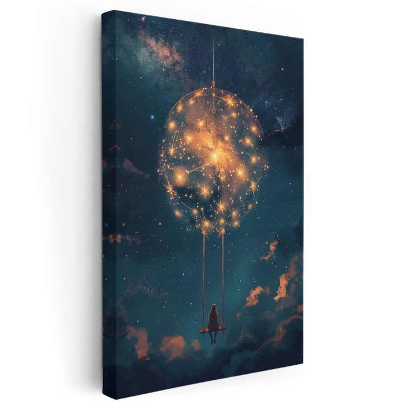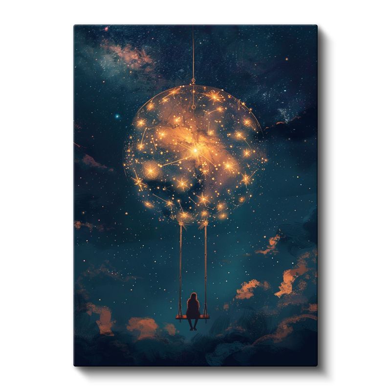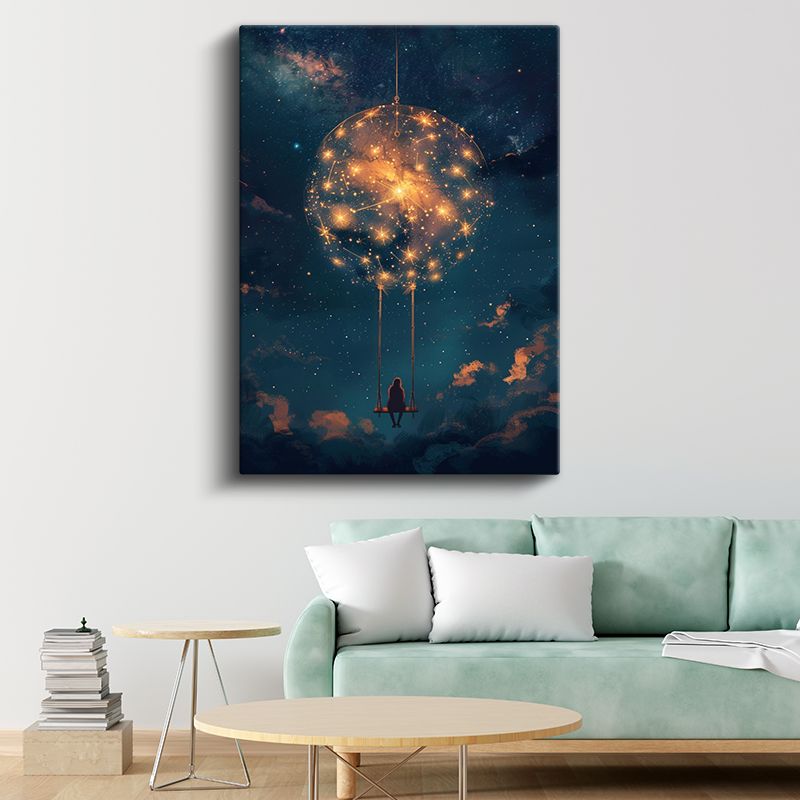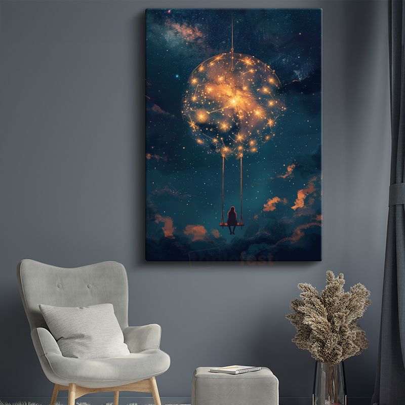 Kozmik Salıncak - Yıldızların Arasında Asılı Kalan Düşler Kanvas Tablo