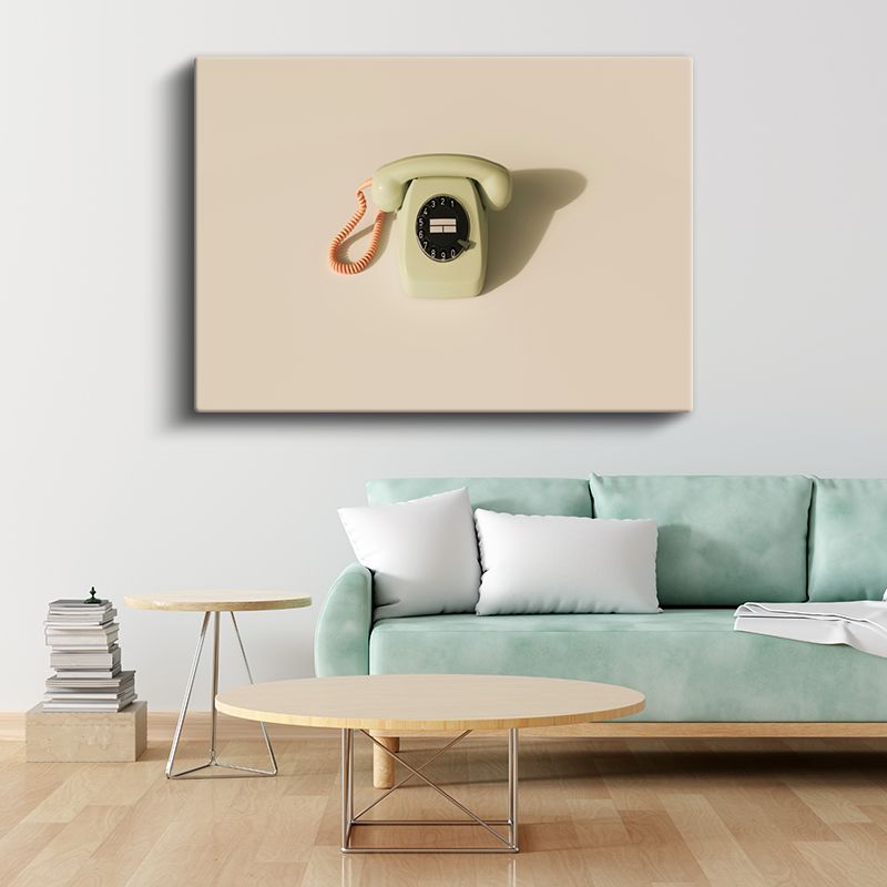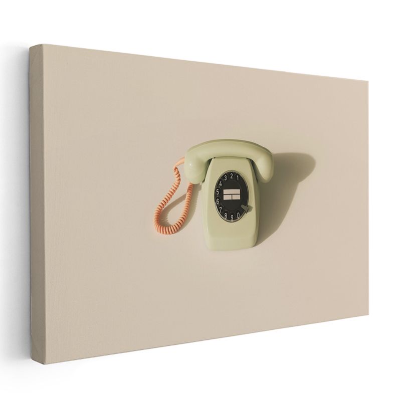 Krem Çevirmeli Telefon - Retro İletişim İkonu Kanvas Tablo