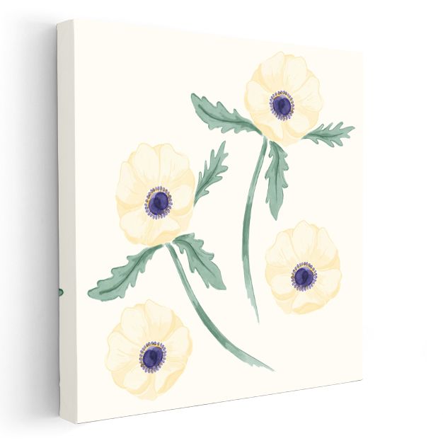 Krem Gelincikler - Minimalist Botanik İllüstrasyon Kanvas Tablo