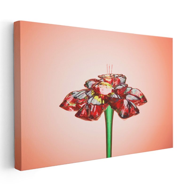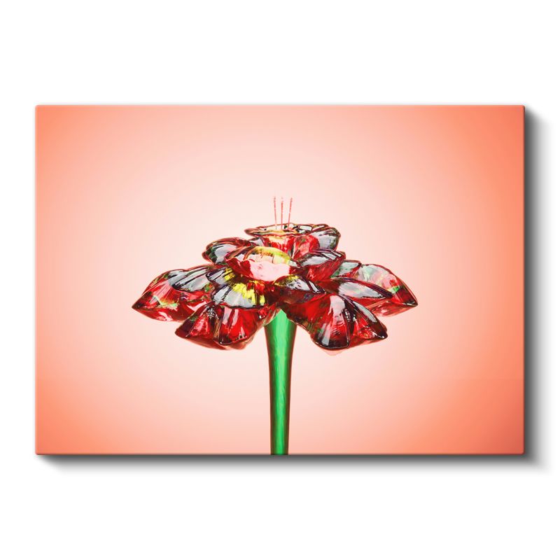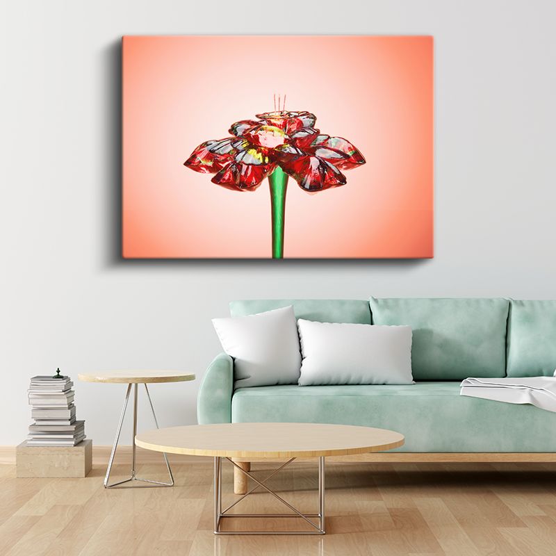Kristal Çiçek - Kırmızı Cam Efektli Çiçek Tasarımı Kanvas Tablo