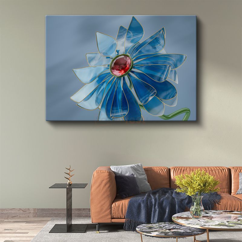 Kristal Çiçek - Mavi Cam Efektli Kanvas Tablo