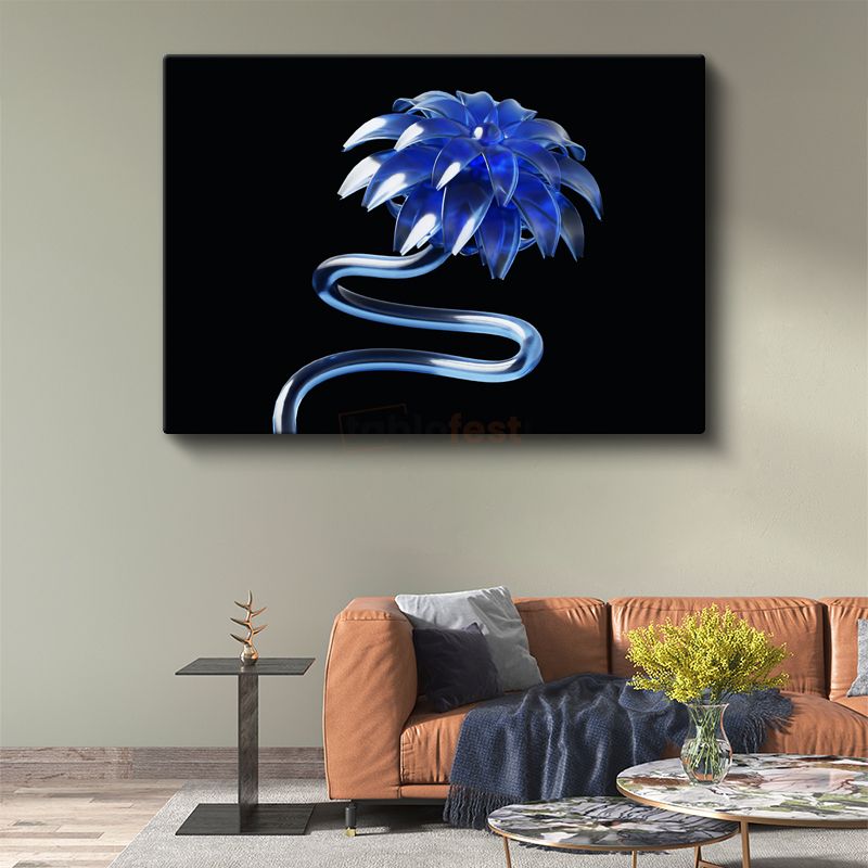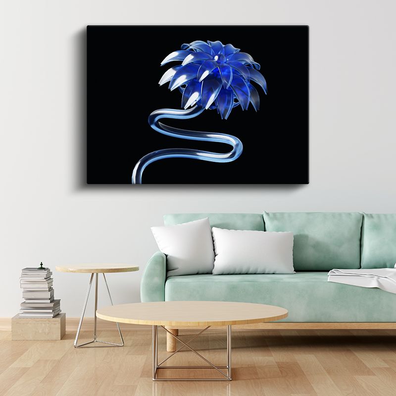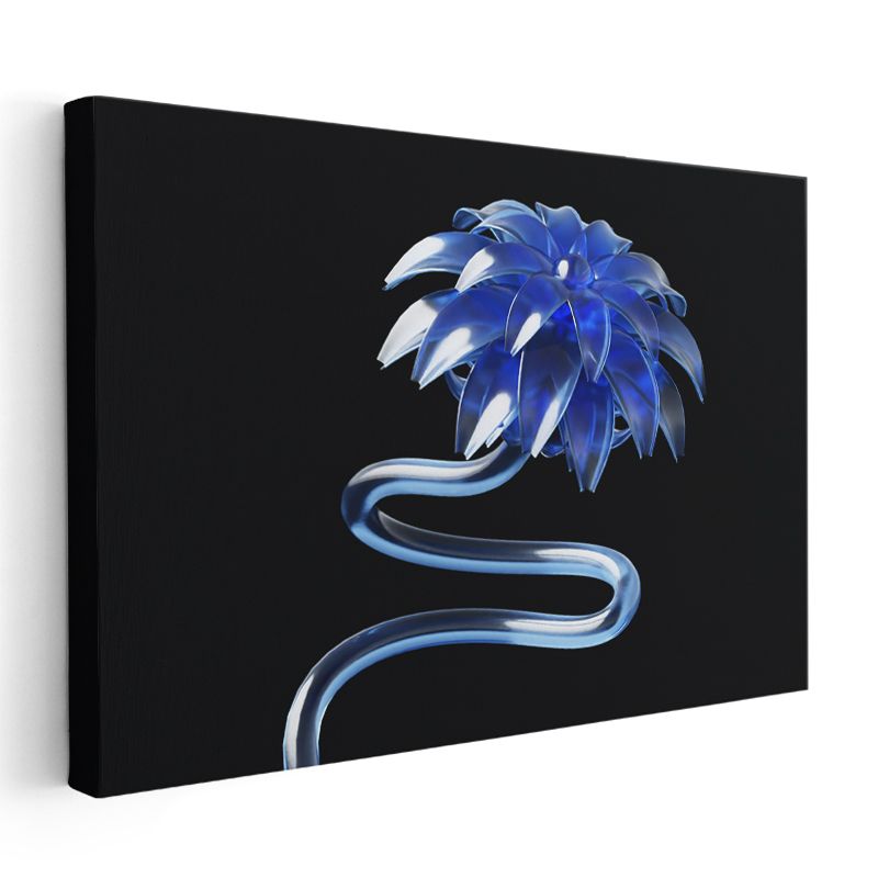 Kristal Çiçek - Mavi Cam Heykelsi Tasarım Kanvas Tablo
